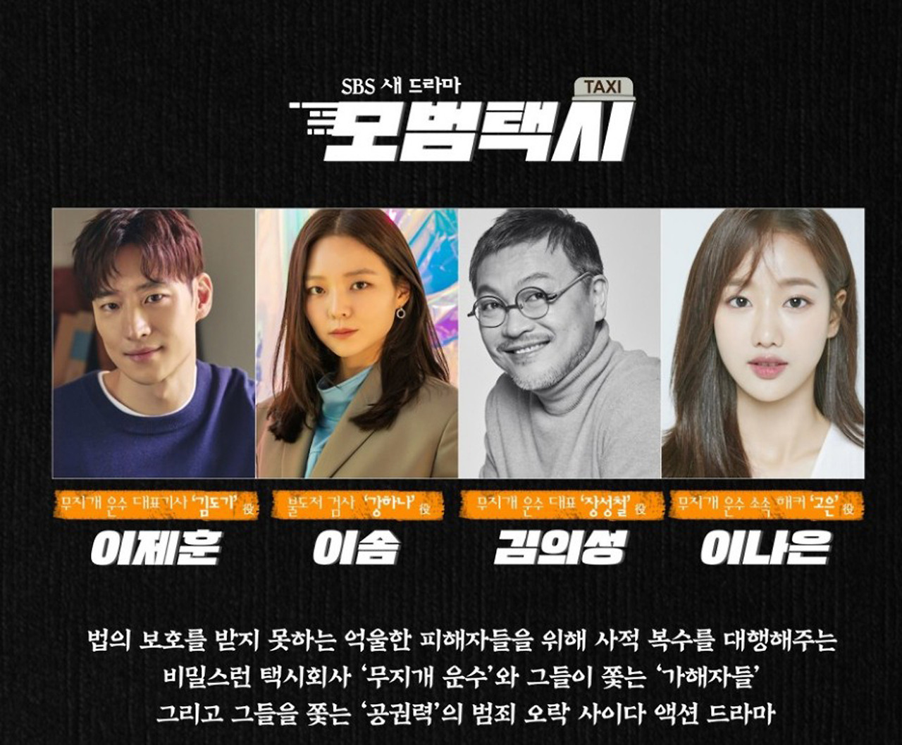 《모범 택시》는 2021년 4월부터 방송 예정인 sbs 금토 드라마이다.